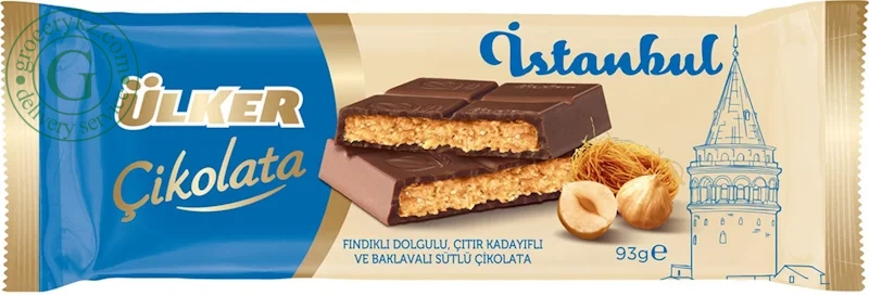 - Ulker hazelnut and baklava milk chocolate, 93 g